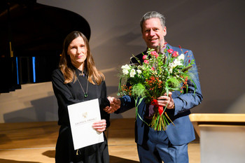 Musikalisch umrahmt wurde die Preisverleihung durch den Bariton Florian Götz, der von Mozart bis Bolcom unterhaltsam sein breites musikalisches Repertoire vorstellte.