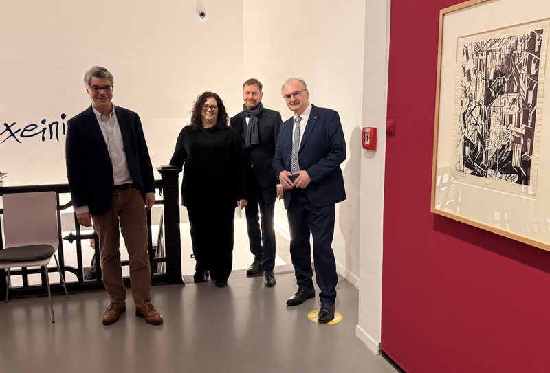 Bei einem Besuch in der Welterbestadt Quedlinburg führte Ministerpräsident Dr. Reiner Haseloff seinen Amtskollegen, den sächsischen Ministerpräsidenten Michael Kretschmer, zu ausgewählten Kulturstationen der Stadt. Nach einem Besuch des Oberbürgermeisters Frank Ruch im Rathaus besichtigten beide die Lyonel-Feininger-Galerie, wo Museumsdirektorin Dr. Adina Rösch durch das Haus führte, das einen der weltweit umfangreichsten Bestände an Druckgrafiken des Bauhauskünstlers Lyonel Feininger beherbergt.